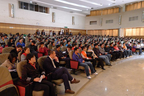 报告中,郭文斌先生从感恩、成功和阅读三个角度深入浅出地畅谈了他的认识。谈到感恩时,他从自己的经历出发,希望广大同学用最真诚的感情感恩父母、感恩老师、感恩社会、感恩自然,用感恩的心对待一切事务。接着他从感恩的角度引出了“成功”的概念,并结合自己对古语中“道德”和“舍得”的理解和认识,旁征博引,认为“成功来自人性的起源,来自每一件事情美好之处的体味”,感恩心、敬畏心和爱心才是成功的秘诀;在“阅读”上,他告诫大家要学会“选择”,阅读一些能让内心安静祥和的书,让阅读为人生的发展起到积极的作用。郭文斌先生用生动的语言形象地阐述了人生中遇到的基本问题,现场气氛热烈,广大同学以问答的形式和郭文斌先生进行了现场交流。