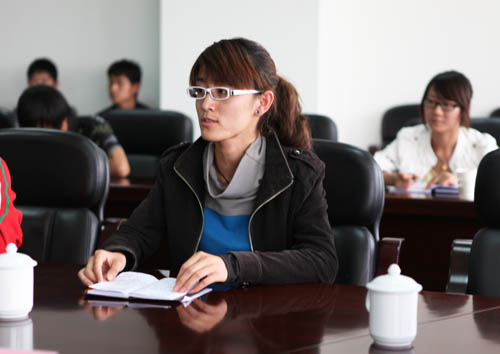 教师代表杨慧娟在座谈会上发言