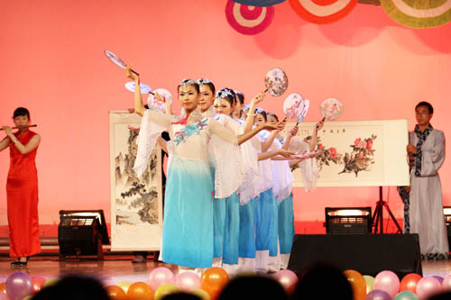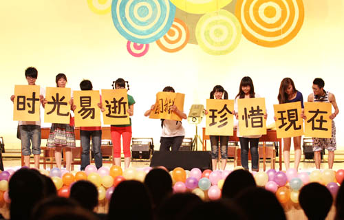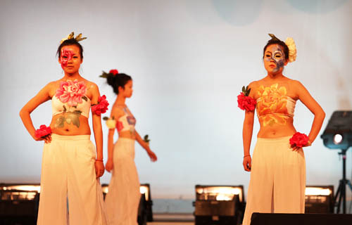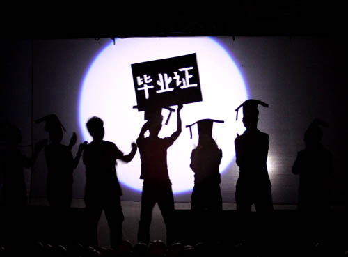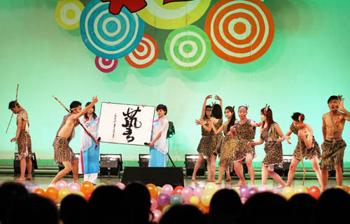 晚会分为“青春记忆”、“师恩难忘”及“梦想启航”三大篇章。在古韵悠悠的《兰亭序》中,美院学子用古色古香的画轴展开了青春的回忆。《北方有佳人》将我们带入花的世界,同学们用人体彩绘的方式抒发着青春的激情。难忘师恩,难忘大学,在学院领导和老师们对毕业生的寄语中第二篇章“师恩难忘”拉开了序幕。新式双簧、博物馆奇妙夜,美院学生用他们独特的创意表达着对恩师的深深谢意。第三篇章“梦想启航”中,由09视传班的同学们选送的《千百来天》这一节目用人体剪影的方式深情演绎了大学四年生活的点点滴滴,令在场毕业生感动不已……