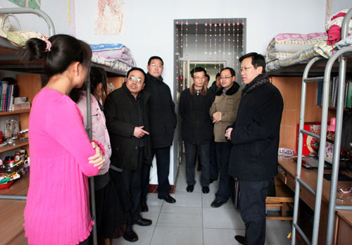 【宁夏大学新闻中心讯 黄二宁/图 翟伟/文】为确保寒假期间我校的安全稳定,使师生员工平安度过2011年春节,1月18日下午,校党委副书记赵利宁带领校长办公室、教务处、学生处、保卫处、综治办、基建处、后勤管理处、后勤集团等相关职能部门负责人,对我校部分重点单位进行了安全大检查。