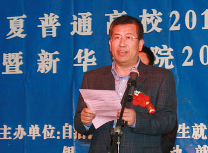 【宁夏大学新闻中心讯 新华学院/文】 4月27日下午,新华学院举办了宁夏普通高校2011年毕业生春季人才洽谈会暨2011届毕业生校园招聘会。自治区教育厅学生处处长杨文刚,银川市劳动就业服务局副局长王连生,宁夏大学学生处副处长夏雪花,新华学院党政领导周学峰、刘炜、张桓、党小龙出席了招聘会开幕式。学院党委副书记、常务副院长刘炜代表学院致辞。