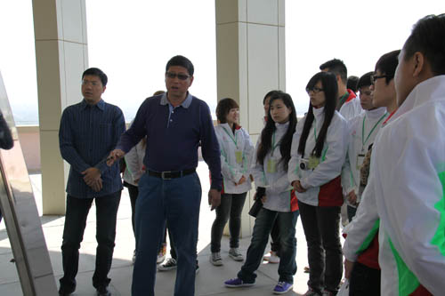 座谈会结束后,考察团一行登上A区主楼楼顶鸟瞰了校园全貌,校基建处处长李毅介绍了宁夏大学建设发展规划。考察团一行与我校师生合影留念。