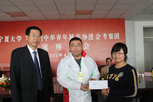 校党委副书记赵利宁向考察团一行介绍了宁夏的历史文化和宁夏大学建设发展情况,并对考察团对我校学生进行捐助表示感谢,希望以此次考察交流为契机,今后能够开展更深入的学习交流活动。
