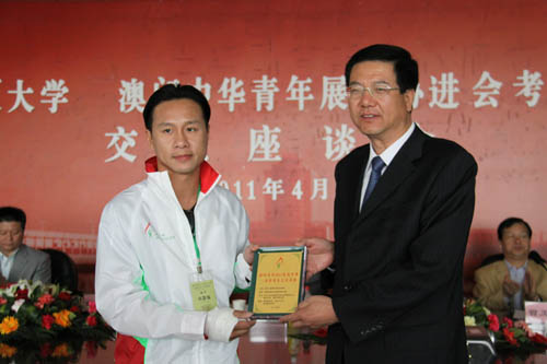 座谈会上,校资助管理中心主任郑燕玲致欢迎辞,林家伟介绍了澳门中华青年展志协进会情况,澳门学生代表介绍了澳门的历史文化。考察团对我校学生进行了捐助,并向我校赠送了纪念品。