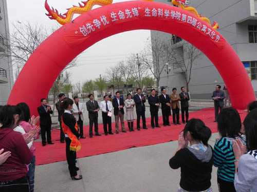 【宁夏大学新闻中心讯 生科学院/文】 4月20日中午,生命科学学院以“创先争优,生命先锋”为主题的第四届公寓文化节拉开帷幕。校党委副书记赵利宁出席文化节开幕式并讲话。校学生党建办公室、党委宣传部、学生处、团委等部门负责人,生命科学学院党政领导周强,叶志春,何彦平,刘军红、苏建宇等出席开幕式。开幕式由生命科学学院院长王玉炯主持。