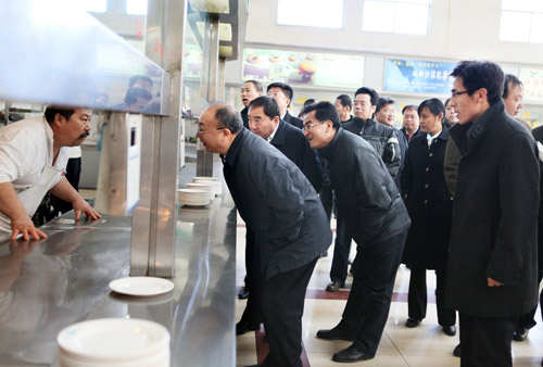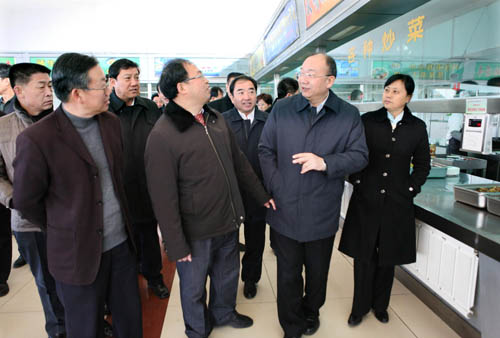 12月7日上午,以工业和信息化部总经济师周子学为组长的国务院稳定物价保障群众基本生活第三督查组,在自治区政府副秘书长许宁、自治区物价局局长马志歧、我校党委书记齐岳、副书记赵利宁、自治区发改委、经济和信息化委、商务厅、教育厅、工商局等部门负责人的陪同下莅临我校检查调研学生食堂伙食供应及饭菜价格情况。
