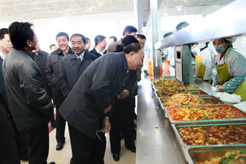 督查组一行先后视察了我校C区第一学生食堂及第二学生食堂,详细了解了食堂伙食供应、饭菜价格及学生生活等情况。视察过程中,周子学组长一行还与正在就餐的同学进行了亲切交谈,详细询问了同学们对食堂的服务、饮食口味、饭菜价格是否满意。齐岳书记向督查组介绍了我校在农产品价格快速上涨的不利条件下,全力保障学生食堂价格稳定及学校加大食堂补贴力度等方面所做的工作和采取的措施。他表示,为化解物价上涨给学生食堂带来的压力,学校通过特价菜等措施,保证家庭经济困难学生的生活不受影响。