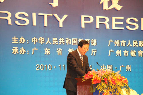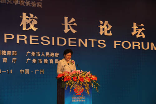 中共中央政治局委员、国务委员刘延东出席开幕式并作重要讲话。教育部部长袁贵仁在大会上作了主旨报告,指出中国政府把科教兴国战略、人才强国战略和可持续发展战略作为国家三大战略,不断推进高等教育的改革发展。强调在新的历史起点上,中国高等教育要把提高质量作为核心任务,坚持走有特色、高水平的科学发展之路,更加重视发展理念的转变,更加重视人才培养模式的创新和体制机制的改革,更加重视高等教育在促进区域经济社会发展中的“助推器”作用。袁贵仁最后指出,大学作为新思想、新知识、新智慧、新科技诞生的摇篮,在推进人文交流、增进人民友谊、促进区域发展、建设和谐亚洲方面,肩负着特殊的责任和使命。中国将进一步加强各国大学间的对话、交流,努力在合作中促发展,在发展中共进步,为亚洲乃至人类文明进步做出新的更大贡献。