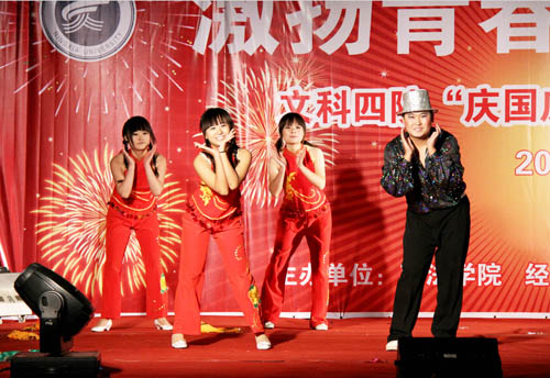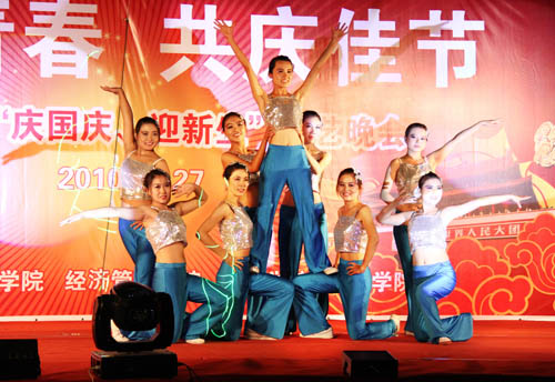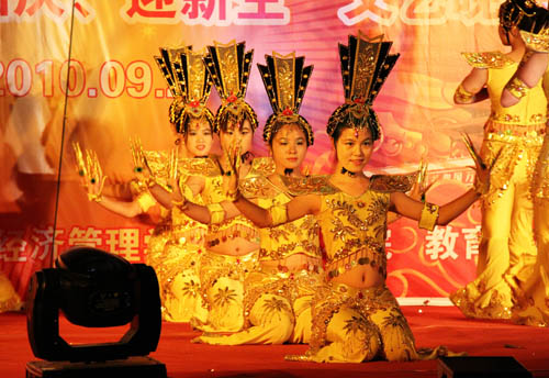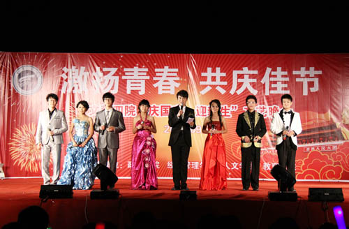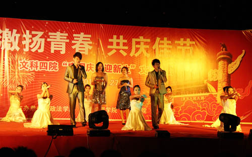 【宁夏大学新闻中心讯 黄二宁/图 经管学院/文 】今夜星光灿烂,文科楼的上空烟花耀眼。9月27日晚,文科四学院“庆国庆、迎新生”文艺演出在文科楼前隆重举行。校党委书记齐岳,副校长李伟、李星,学校各党政机关领导莅临演出现场。政法学院、经管学院、人文学院、教育学院相关领导,以及四个学院2010级全体新生观看了演出。