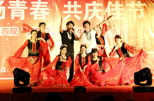 伴着烟花的绽放,演出开始了。四学院选送的节目形式多样,内容丰富。《吉祥颂》的舞姿我们期待四院发展会《创造奇迹》。金秋九月,《青春如花》的日子里,新生们感受着《夜来香》,心里有一个共同的愿望:宁夏大学,我们《为你祝福》。经管学院女生独唱《暧昧》清唱,使晚会活跃的氛围逐渐变的宁静,别具一格的粤语歌旋律,韵味无穷。歌伴舞《相逢是首歌》整体色彩鲜艳,迎来阵阵掌声。校党委书记齐岳老师,尽情高歌一曲《长江之歌》,娓娓道来他对宁夏大学未来发展的美好祝愿。