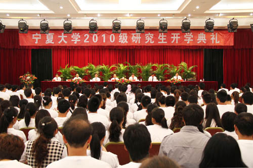 【宁夏大学新闻中心讯 黄二宁 图/ 田宁 吕召军/文】9月16日,宁夏大学2010级研究生新生开学典礼在国际交流中心隆重举行。校党委书记齐岳、校长何建国、校党委副书记赵利宁、副校长许兴、李伟、王燕昌、李星和相关部门负责人出席。副校长王燕昌主持了开学典礼。