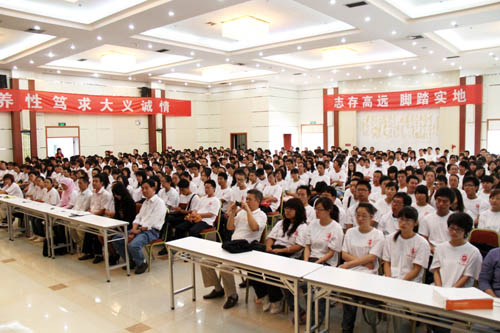 何建国校长在典礼上致辞。他首先代表全校师生对新生的到来表示热烈欢迎和殷切期望。他指出,当前环境下,研究生教育的实质是培养学生的创新能力,因此新生们要锐意进取、勇于创新,努力把自己锻炼成为一个富有理论修养、兼备创新能力的综合型高素质人才;必须要以学为先,时刻牢记自己是一名学生,踏踏实实做学问,在不断增强自身文化素养的的同时为广大的本科生做好表率;要诚实为人,不断增强自己的道德修养,努力把自己培养成一个诚信守信、德才兼备的人才。