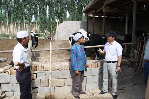 启动仪式结束后,专家服务团成员分三组赴养殖农户家中,与肉牛养殖户进行交流,了解农户的养殖情况,并就他们在肉牛养殖过程中遇到的问题给予了技术指导。