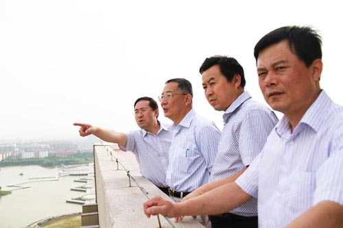 沈岩院士登上我校综合楼十七楼鸟瞰校园