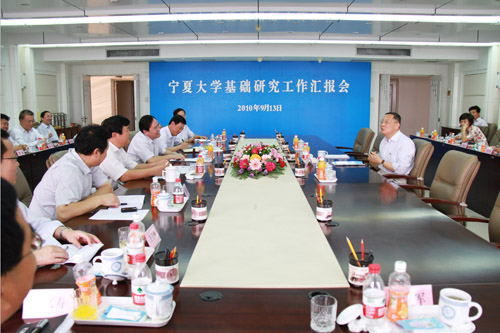 谢应忠副校长就我校“人才培养”、“十一五”自治区重点支持的基础研究项目和重点实验室建设等方面汇报了我校基础研究工作的情况。