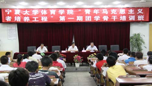 【宁夏大学新闻中心讯 田 宁】多少晶莹的泪水写在脸上,又有多少重担压在肩上---古老的华夏文明该怎样继承又该怎样发展?作为承前启后、继往开来的一代,青年学生如何紧跟时代的步伐,与时俱进,勇于创新,开拓进取,承担起实现中华民族伟大复兴的光荣使命?6月24日晚,校党委副书记赵利宁出席体育学院“青年马克思主义培养工程”第一期团学骨干培训班,作了题为“实现中华民族伟大复兴是当代青年学生的光荣使命”的专题讲座,深刻阐述了青年学生的责任与使命,并勉励在场学子:笃行理想,树立为共产主义事业奋斗终身的远大志向,树立正确的荣辱观、道德观,更要坚持正确的人生航向,用正确的思想武装头脑,做到“胸怀祖国,服务人民”,完成历史赋予自己的崇高使命,为中华民族的伟大复兴做出自己应有的贡献。