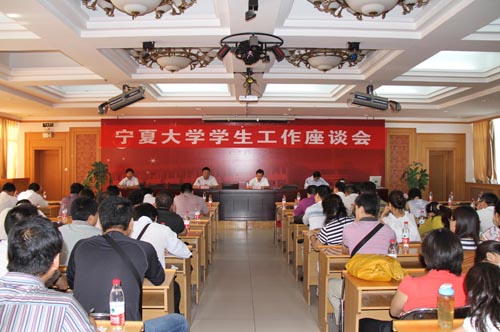 【宁夏大学新闻中心讯 翟伟 图/文】 8月27日上午,我校学生工作座谈会在高师培训中心会议室召开,校党委副书记赵利宁出席会议。校党委组织部部长王亚勇、学生处、团委负责同志及各学院党总支副书记和辅导员参加了座谈会。座谈会由学生处处长王宏伟主持。