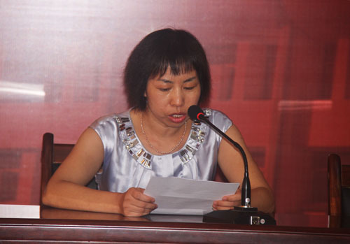 美术学院党总支副书记郅秀丽在会上做交流发言