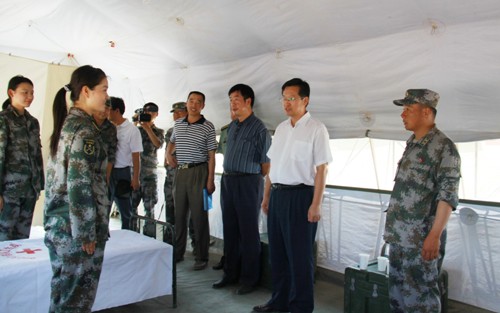 【宁夏大学新闻中心讯 田宁 图/文】7月28日,八一建军节前夕,校党委副书记赵利宁带领学生处、后备军官选拔培训办公室、国防教育中心及各国防生培养学院等部门负责同志冒着酷暑前往中国人民解放军68232部队,看望正在这里进行集中训练的我校2007级国防生,并为部队官兵带去了慰问品,受到部队官兵的热烈欢迎。