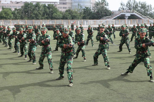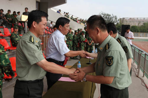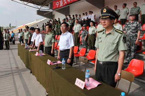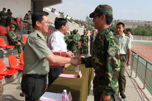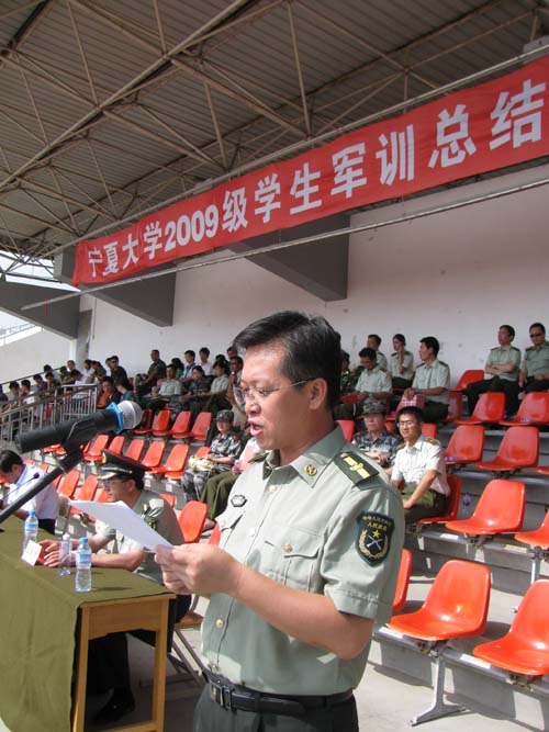 【宁夏大学新闻中心讯 李斌/图 翟伟/文】 7月26日上午,我校在校本部B区田径场隆重举行2009级学生军训阅兵式暨总结表彰大会。2009级学生军训工作至此圆满结束。