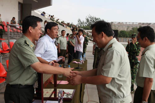 军训团团长魏国孝宣读获奖单位及受奖人员名单。物理电气信息学院、音乐学院、农学院、化学化工学院、经济管理学院、新华学院等六个单位被授予“军训工作获奖单位”荣誉称号。外国语学院闫蓉等439人被授予“军训先进个人”荣誉称号。王瑞等24人被授予“军训新闻宣传工作先进个人”荣誉称号。群舞《青春使命》等七个节目被评为我校庆祝学生军训工作25周年暨2010年军训文艺汇演优秀节目。