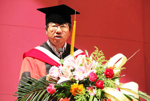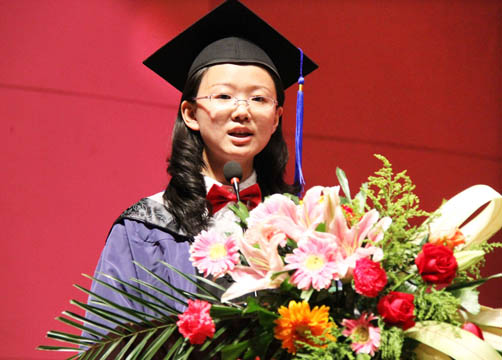 2007级分子生物与化学专业张艳同学作为研究生代表进行了发言。真挚朴实的话语中饱含着对母校和师长的深情与感恩。教师代表、人文学院郎伟教授的发言载满了对2010届毕业研究生的殷殷希冀和真诚祝福。