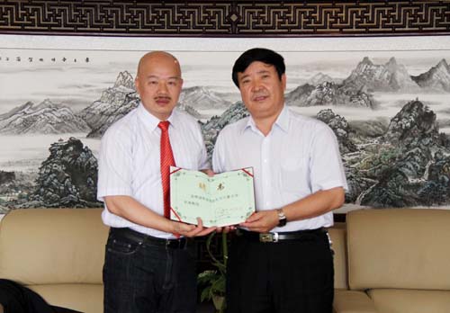 会见期间何建国校长向李百炼教授颁发了宁夏大学名誉教授的聘书。