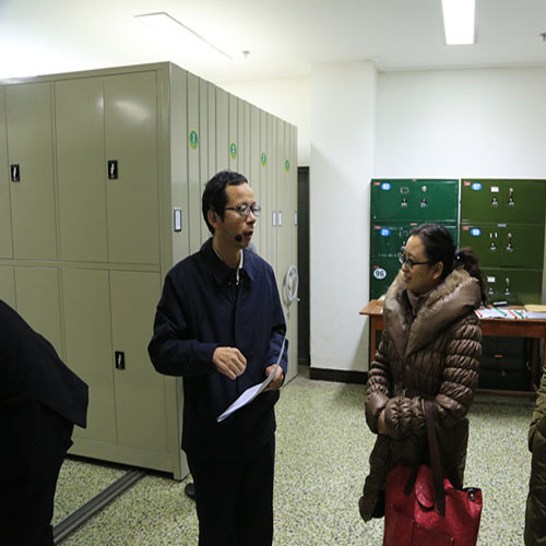 专家组一行参观了我校学生处档案室,听取了档案室董惠琴老师对在校学生档案管理的具体办法的工作介绍。随后,专家组一行参观了学校档案馆,听取了档案馆馆长雷慧对往届毕业生档案管理的情况介绍。来宾现场观摩了档案提取工作流程和毕业生档案管理办法的具体措施。