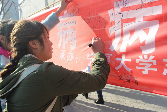 【宁夏大学新闻中心讯 团委】为普及预防艾滋病的知识,提高全校师生对艾滋病的科学认识,在12月1 日世界艾滋病日到来之际,在校团委、计划生育办公室、校大学生性与生殖健康教育基地的指导下,我校志愿者协会组织全体志愿者于本部A、B、C三个校区同时开展了“预防艾滋 珍爱生命”公益宣传签名活动。