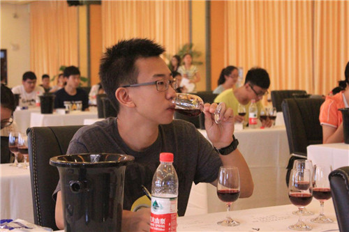 实践能力环节考试考场布置特殊,要求高,服务考试的工作人员多,考试耗材大,轮次多,时间长。2013级学生共111名学生,考试使用专门定制的白色桌布111条、白色品鉴纸111张、吐酒槽111个、标准品酒杯555个,还配备了足够的面巾纸、矿泉水、苏打饼干的考试耗材。为了保证考试顺利进行,五论考试需要侍酒人员29名,监考人员8名;考试共分为五轮进行,前四轮主要考察味觉阈值测定、酒精度排序品评、挥发酸异常品评、差异性鉴别品评,第五轮考察评酒及酿酒葡萄品种鉴别;考试用酒共328瓶,其中基酒220瓶;考核用酒9款108瓶,大部分选用我区知名酒庄的优质葡萄酒,还有部分国外葡萄酒。学生通过实践环节的考试,既检验了自己的品酒功夫,又得到了一次修养的提升。