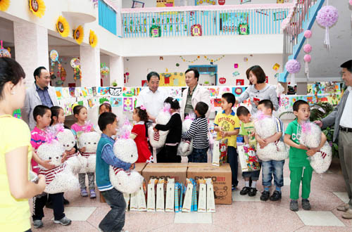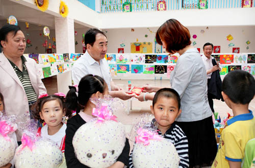 齐岳书记给幼儿园小朋友送去节日礼物和慰问金