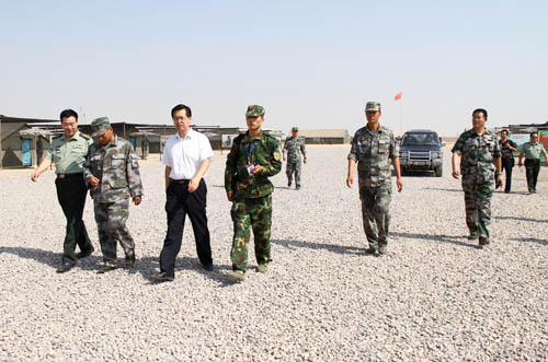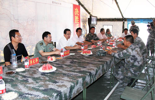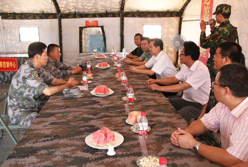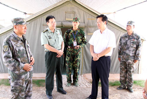 【宁夏大学新闻中心讯 记者马璐璐/文 黄二宁/图】7月22日上午9时至11时,宁夏大学党委副书记赵利宁、中国人民解放军驻宁夏大学后备军官选拨培训工作办公室主任何义时一行赴兰州军区某外训基地,亲切看望并慰问了集团军183团全体官兵及我校参训国防生。