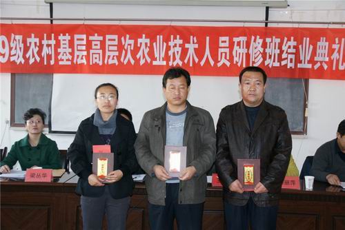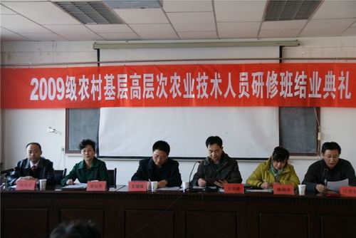 【宁夏大学新闻中心讯 农学院】由自治区人力资源与社会保障厅、财政厅和农牧厅主办,宁夏大学农学院承办的2009级农村基层农业高层次技术人员研修班结业典礼11月2日下午在农学院4楼会议室举行。自治区人力资源与社会保障厅职业能力建设处处长王瑞锋、副处长梁丛华,自治区财政厅政策法规处副处长藤丽萍,宁夏大学研究生院院长王银春,农学院党总支书记何凤军、副院长冯登侦以及2009级农村基层农业高层次技术人员研修班全体学员参加结业典礼。典礼由研究生院院长王银春主持。