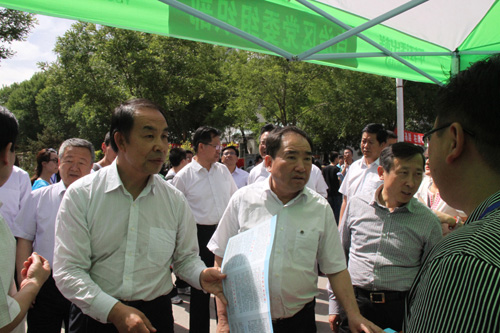 姚爱兴在齐岳、马金元等的陪同下,视察了招聘会现场,并就今年毕业生的就业形势、招聘岗位、薪酬待遇、求职意愿等问题进行了交流。