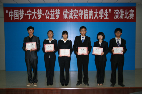 此次演讲比赛不仅让同学们有了一次锻炼、展示自己的机会,更让大家感受到了演讲的魅力和艺术,深刻体会到了“中国梦·宁大梦·公益梦”的美好蓝图,也让在场的每一位观众深刻地理解了诚信的内涵。