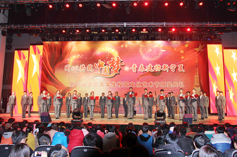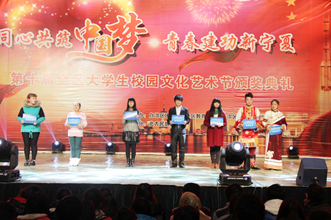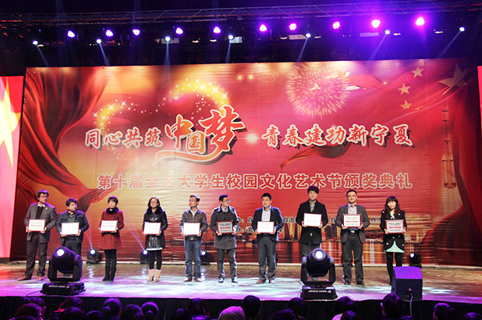 【宁夏大学新闻中心讯 团委报道】11月30日,由自治区团委、自治区教育工委、自治区教育厅、自治区学联联合主办的“同心共筑中国梦·青春建功新宁夏”第十届全区大学生校园文化艺术节圆满落幕。闭幕式对在第十届全区大学生校园文化艺术节中涌现出的先进集体和个人进行了表彰。我校党委副书记赵利宁作为嘉宾出席颁奖典礼。