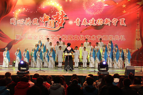 我校学子在第十届全区大学生校园文化艺术节系列活动中历经初赛、复赛和决赛的层层选拔,凭借扎实的基本功和专业素养,分别荣获一等奖3项,二等奖5项,三等奖及优秀奖7项。同时,我校团委因组织得力,参与效果好,获全区高校优秀组织奖。在颁奖典礼上由我校选送的由音乐学院陈宏老师指导、李黎老师伴奏,音乐学院学生表演的合唱《那坨坨》,由校学生会成员表演的诗朗诵《少年中国说》分别登台,展示了我校艺术教育实践的丰硕成果,展现了我校学子过硬的专业素质和良好的精神风貌,赢得了现场观众的一致好评。