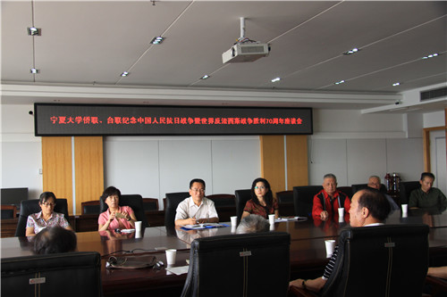 【宁夏大学新闻中心讯 侨联 藏志勇/文 台联 梁宏/图】9月2日,宁大侨联、台联纪念中国人民抗日战争暨世界反法西斯战争胜利70周年座谈会召开,会议由自治区侨联兼职副主席、宁夏大学侨联主席藏志勇主持。