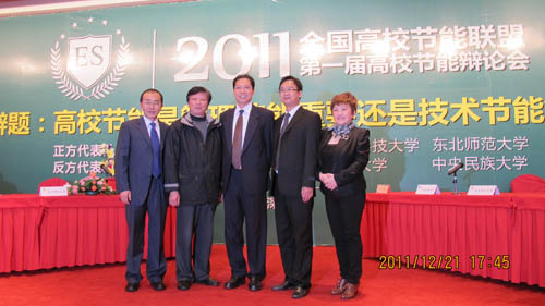 【宁夏大学新闻中心讯 后勤管理处】 12月20日至24日,由中国高等教育学会后勤管理分会主办,全国高校节能联盟承办的2011年全国高校节能经验交流会暨表彰会在深圳召开。以我校后勤管理处副处长杨梓为领队,由宁夏大学、中央民族大学、南京师范大学、江苏大学的四位代表组成的反方代表队参加了首届高校节能辩论会,四位选手精心准备、沉着应战,最终战胜正方代表队获得首届高校节能辩论会最佳团队奖。同时,后勤管理处相关工作人员撰写的三篇论文在全国高校优秀节能论文评选中分别获得了二等奖和优秀奖,受到了大会的表彰。