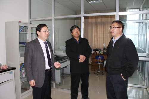 【宁夏大学新闻中心讯 翟伟/图文】 11月13日上午,云南省教育厅副厅长、博士生导师邹平教授来我校考察调研。在自治区教育厅副厅长冀永强、我校副校长谢应忠的陪同下,邹平副厅长先后参观了我校基础生物学实验中心和能源化工自治区重点实验室,考察了生物化学实验室、植物生物学实验室、微生物学实验室和院士工作站、能源化工自治区重点实验室分析测试中心等,并听取了实验室负责人的工作汇报。邹平副厅长对我校实验室建设方面取得的成绩给予了高度肯定,并对我校的发展提出了意见和建议。