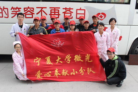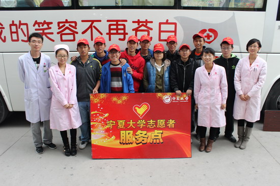 【宁夏大学新闻中心讯 团委】为进一步弘扬“奉献、友爱、互助、进步”的志愿者精神,引导大学生积极投身于社会公益事业,10月29—30日,在校团委的组织下,宁夏大学志愿者协会、微光爱心小分队数计组与宁夏血液中心合作,在校本部C区二餐门口举办了献血活动,号召全校志愿者现场参加献血。