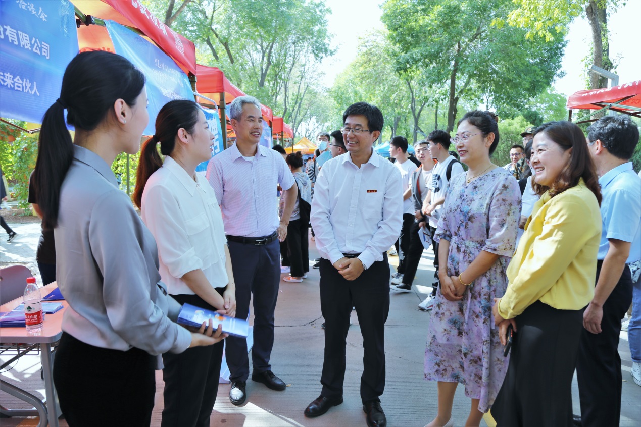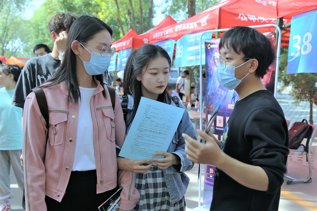 【宁夏大学新闻中心讯 信息工程学院】为做好2022届毕业生就业指导和服务工作,构建学生与用人单位的交流平台,信息工程学院于9月29日下午在怀远校区金波楼前举办了2022届毕业生校园“双选”洽谈会。宁夏大学党委常委、副校长周震,学院党委书记武林波,院长冯锋,学生处资助管理中心主任何文栋等莅临现场指导工作。此次“双选”洽谈会吸引了来自北京、山东、西南、浙江等地的50余家企业,提供了800多个就业岗位,吸引了除学院200多位本科、硕士毕业生外,智能工程学院、物理与电子电气工程学院以及学院其他年级的共计400多名学生也来到招聘会现场。用人单位招聘的岗位涉及计算机大类专业、网络安全、软件开发、大数据处理等多个专业方向。