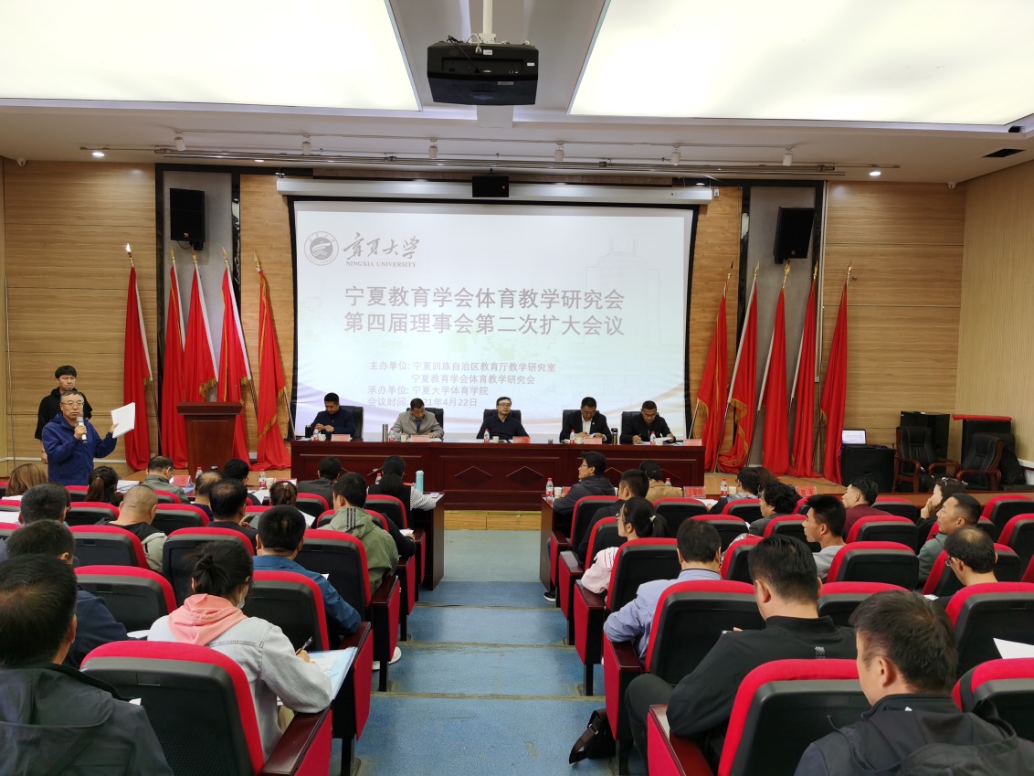 【宁夏大学新闻中心讯 体育学院】为落实立德树人根本任务,促进体教融合,提升学院服务区内中小学体育教研能力,助力教学研究会对教育教学的引领、指导、服务与交流。4月22日,宁夏教育学会体育教育研究会第四届理事会第二次扩大会议在英才报告厅举办。自治区教育厅教研室副主任赵保利一行,宁夏大学体育学院行政领导班子,宁夏教育学会体育教学研究会第四届理事会理事,各市、县(区)体育教研员和自治区兼职体育教研员参加会议。自治区教育厅教研室教研员魏复活主持会议。