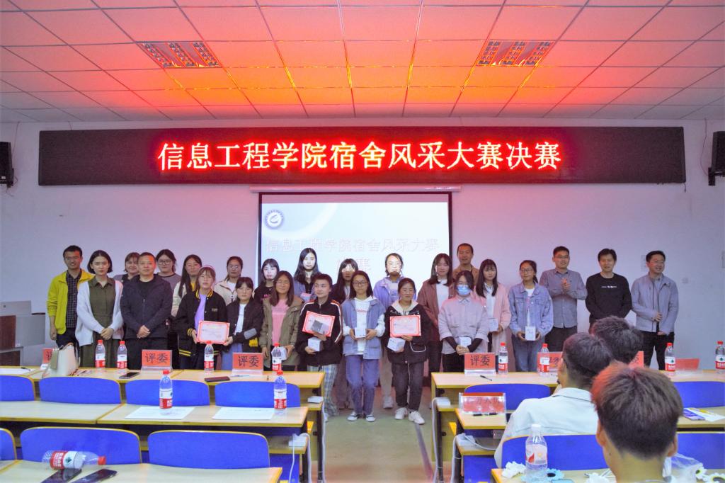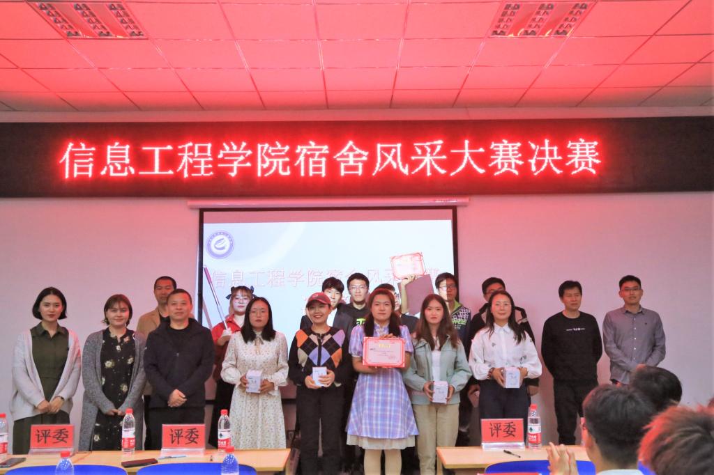 【宁夏大学新闻中心讯 信息工程学院】4月7日,宁夏大学信息工程学院举行宿舍风采大赛决赛,学院党委副书记张振霞、学办主任李密出席活动,来自19、20级的班主任贾伟、刁晨、李振东、吕鹏远、马自强、李帅、高锦涛、苗莉以及辅导员玛伊拜尔、张晓担任评委,团委学生会主席信息工程学院2019、2020级学生观看了比赛。