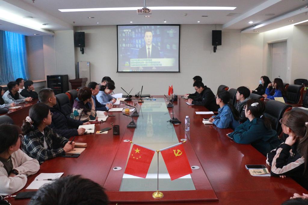 与会人员一同观看了4月19日《新闻联播》相关片段,郭振才副书记为大家总结分享了习近平总书记此次考察的讲话内容。他表示,清华大学的发展历程,是我国高等教育发展的一个生动缩影,在这个关键时期,跟随总书记的考察脚步,可以更好地理解全面育人的教育理念和教育现代化的根本任务。习近平总书记此次考察清华大学对一流大学的建设发展和广大青年学生成长学习提出了殷切希望,是我们做好工作和教育青年大学生的重要指导思想。钟艳霞常务副院长结合“让青春在不懈奋斗中绽放绚烂之花”鼓励青年学子志存高远,珍惜当前的大好时光,青年大学生要肩负历史使命,坚定前进信心,立大志、明大德、成大才、担大任,争取早日成为服务地方经济社会发展的栋梁之材。