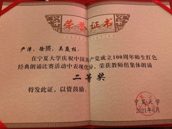 【宁夏大学新闻中心讯 体育学院】在中国共产党成立100周年之际,体育学院积极响应学校党史学习教育的号召要求,怀揣爱党之心、爱国之情,参加了宁夏大学“感党恩·听党话·跟党走”师生红色经典朗诵比赛活动。