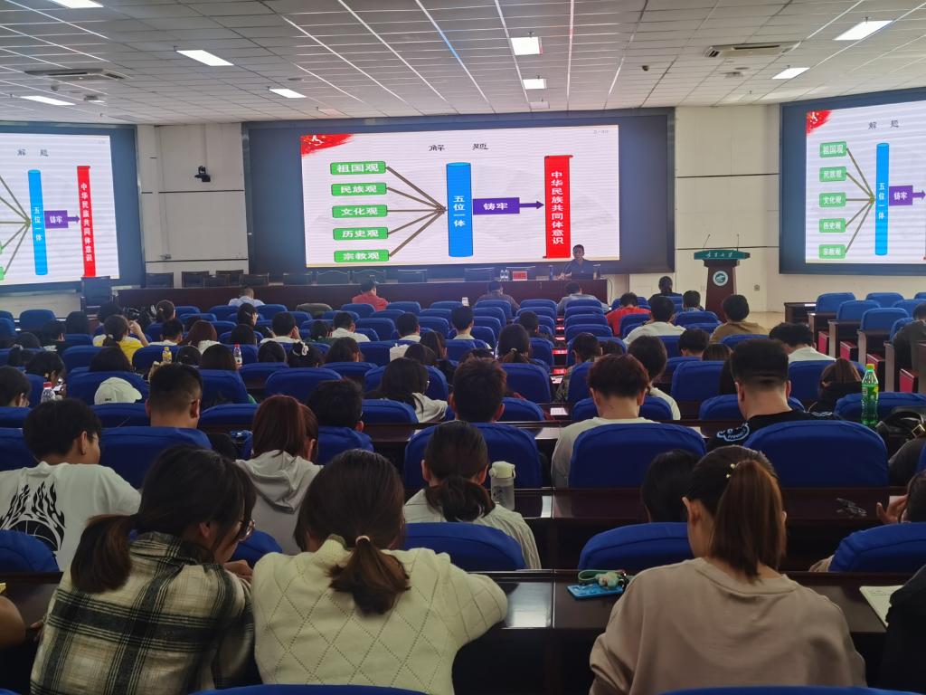 【宁夏大学新闻中心讯 生态环境学院】为深入学习贯彻中央民族工作会议精神,引导师生牢固树立马克思主义“五观”,铸牢中华民族共同体意识,9月22日,生态环境学院特邀人文学院历史系教授白建灵在文荟楼报告厅作《坚定马克思主义“五观”铸牢中华民族共同体意识》专题讲座。学院党委书记杨振东、院长钟艳霞及全体师生参加了报告会。报告会由学院党委副书记虎建华主持。