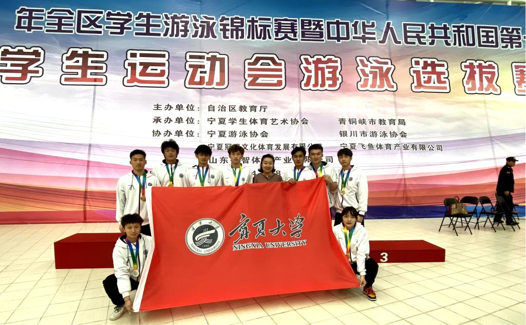【宁夏大学新闻中心讯 体育学院】4月8日至11日,由自治区教育厅主办、宁夏学生体育艺术协会和青铜峡市教育局协办的“2021年全区学生游泳锦标赛暨中华人民共和国第十四届学生运动会游泳项目选拔赛”在青铜峡市拉开帷幕,经过三天的激烈角逐,我校游泳队以6个参赛项目5金、4银、2铜的优异成绩完美收官。