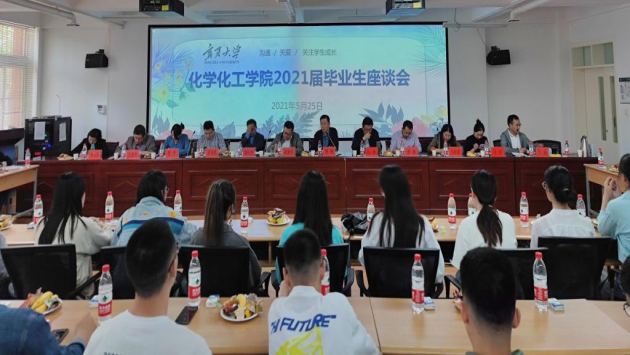 【宁夏大学新闻中心讯 化学化工学院】5月25日,化学化工学院在知化楼举行2021届毕业生座谈会。学院党委书记高继明,院长倪刚,国家重点实验室主任郭庆杰,副院长任永胜、李冰出席会议,2021届50余名毕业生代表参加座谈会,会议由学院党委副书记倪彬主持。