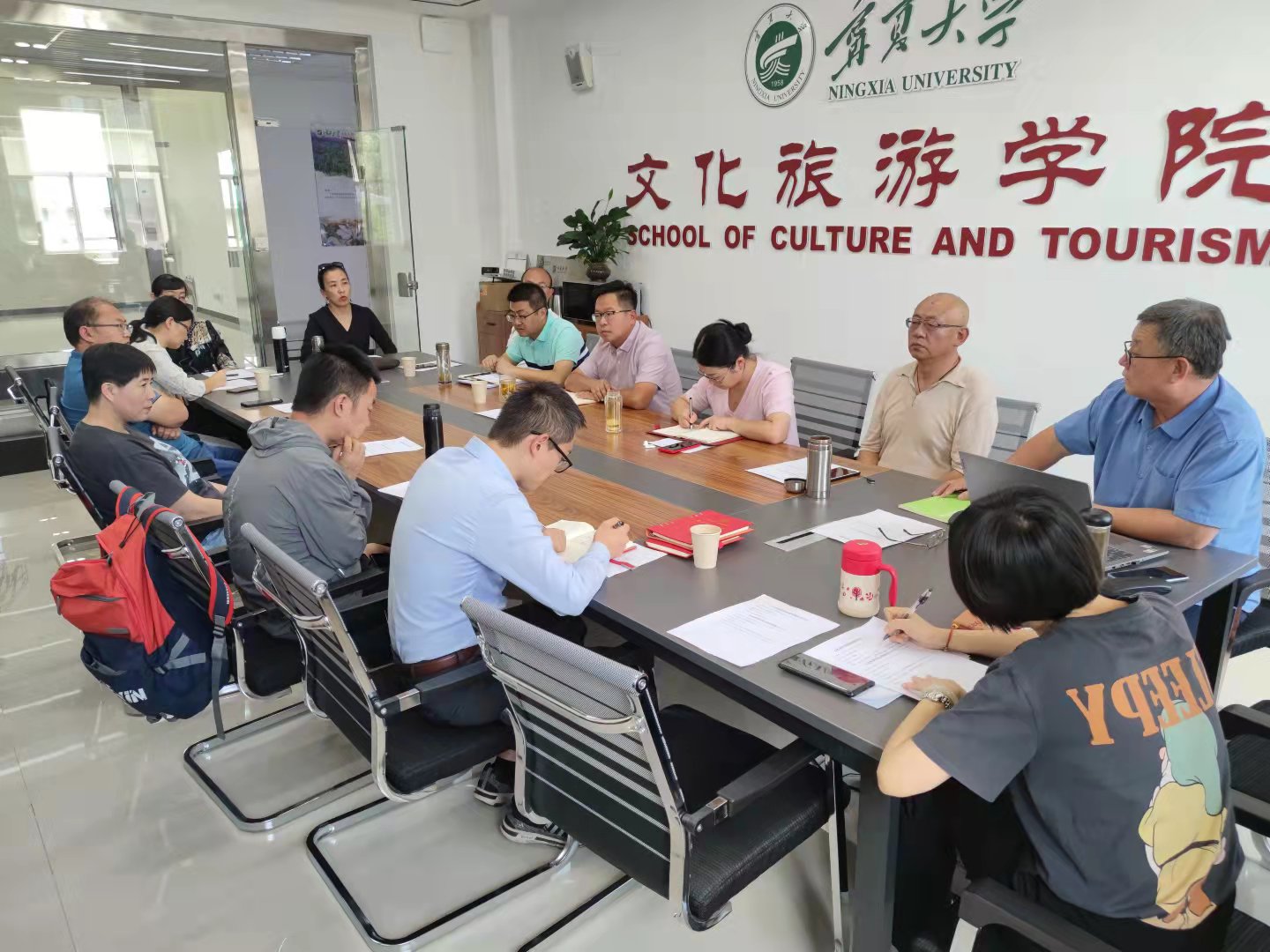 【宁夏大学新闻中心讯 文化旅游学院】为引导学院师生牢固树立马克思主义“五观”,铸牢中华民族共同体意识,促进学院各民族师生交往交流交融,根据学校民族团结进步创建工作和2021年“民族团结进步月”活动的通知要求,9月22日,文化旅游学院正式启动“石榴籽”主题教育系列活动,学院党总支书记马骏,学院院长王磊、学院党总支副书记安瑞平、副院长戴晓琳以及学院全体教师参加了此次活动。会议由安瑞平主持。